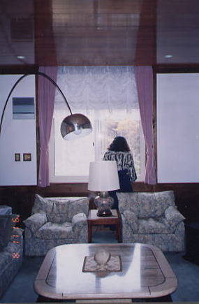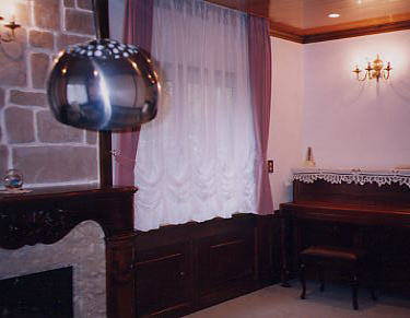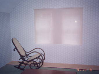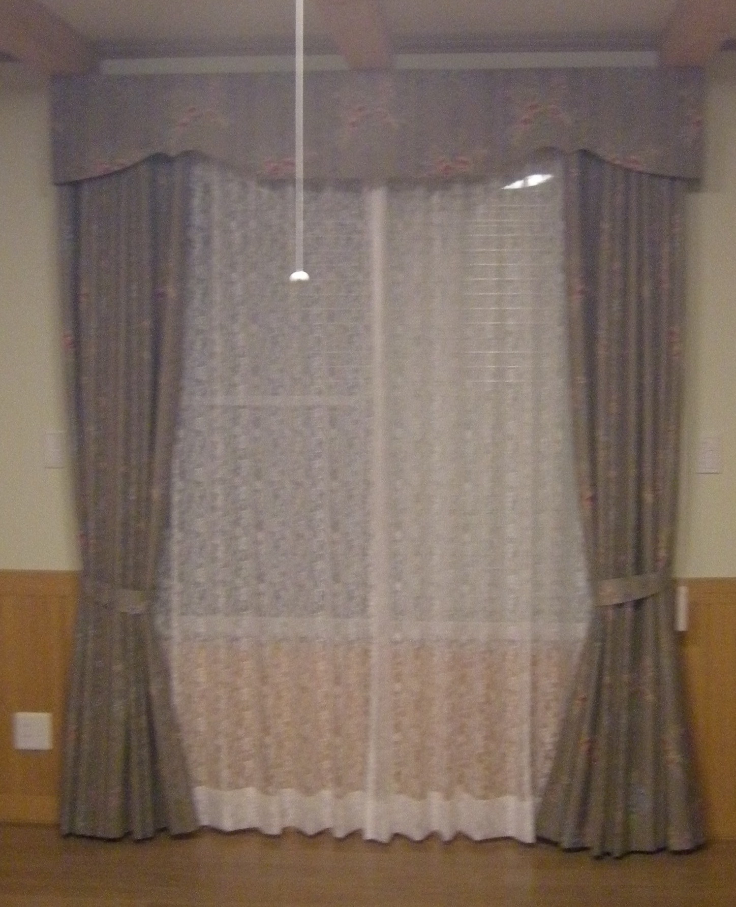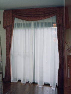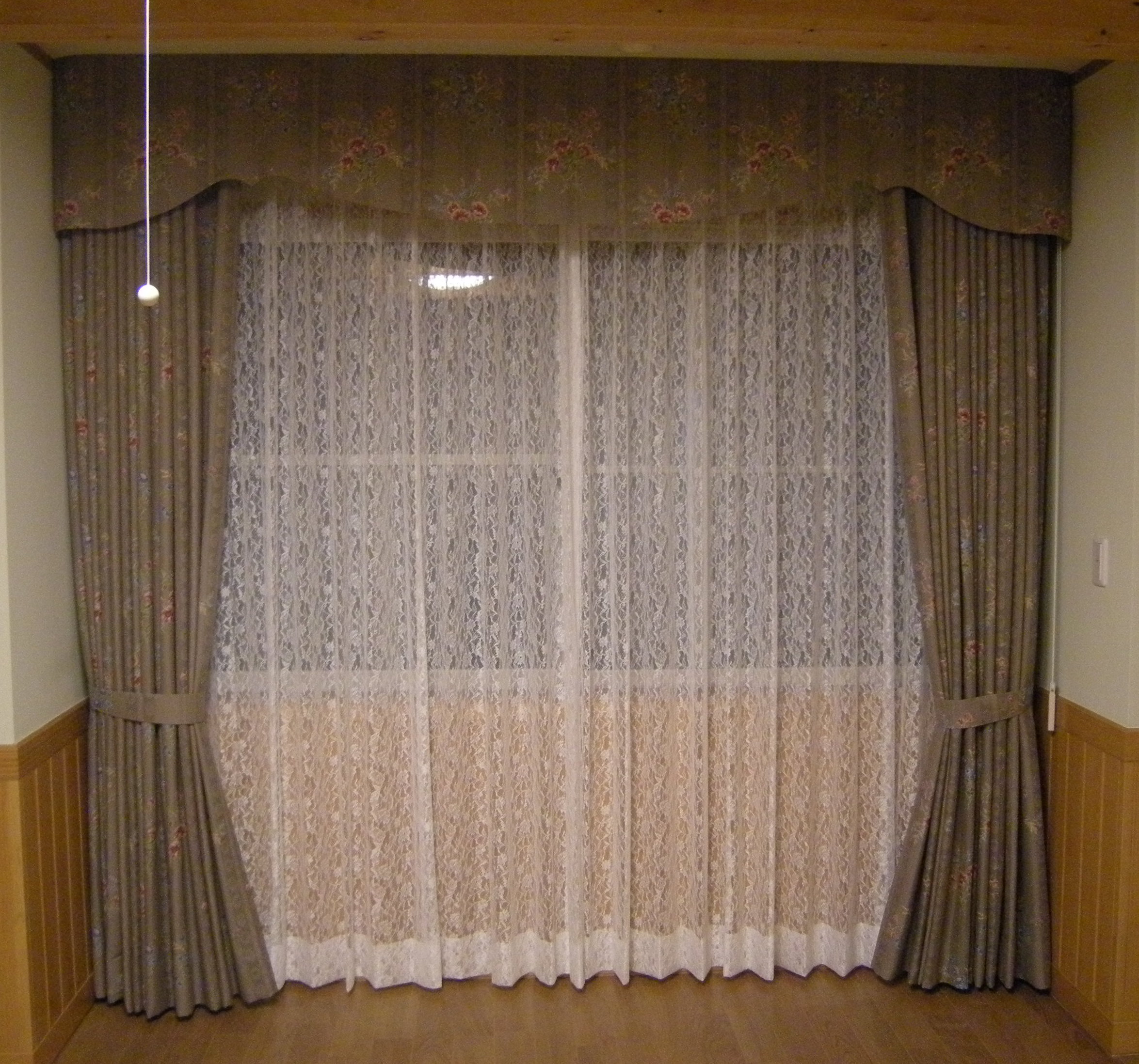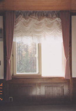 窓が小さく狭苦しいのでカーテンを天井からさげました。