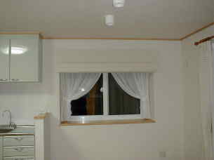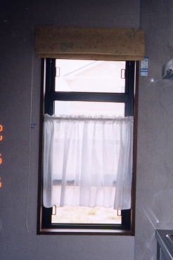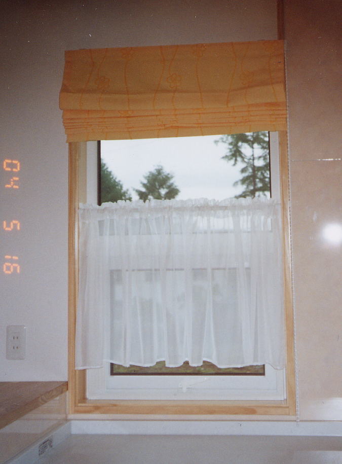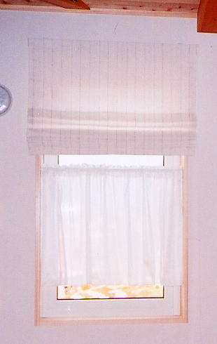| カフェカーテンで柔らかに | 邪魔にならぬよう枠内に収納 | ロフトの遮光にロールスクリーン |