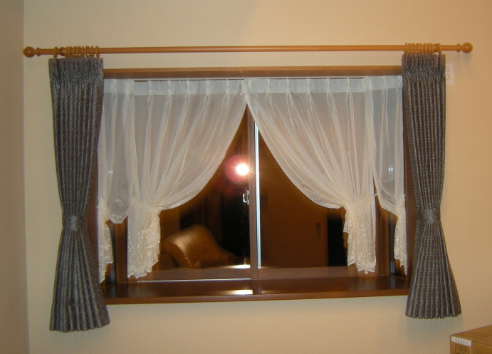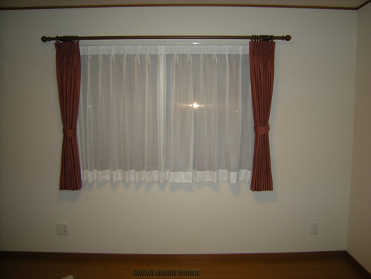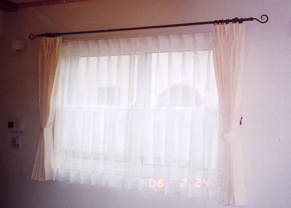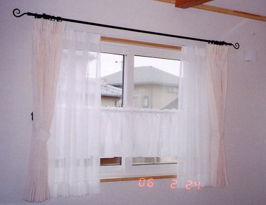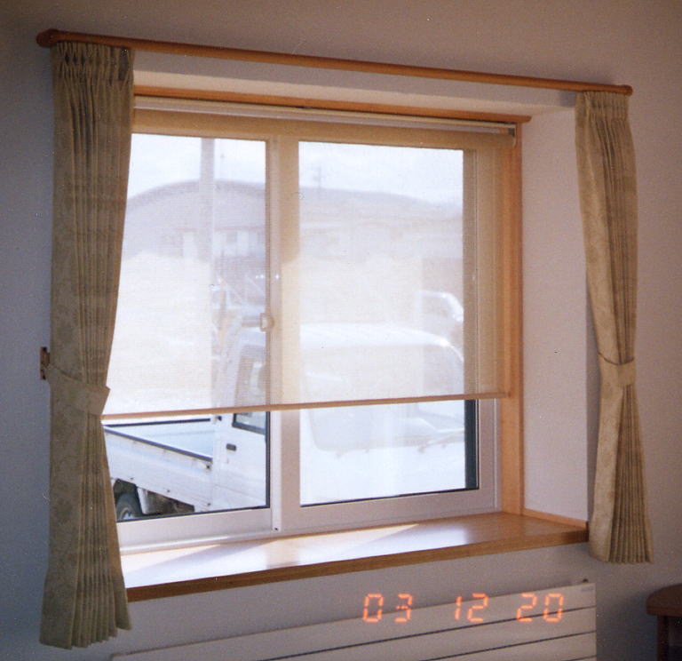 | 佐久市 出窓はボイルレースで しなやかに シェードで遮蔽度もアップ | |
