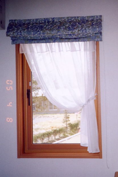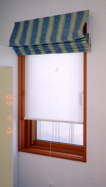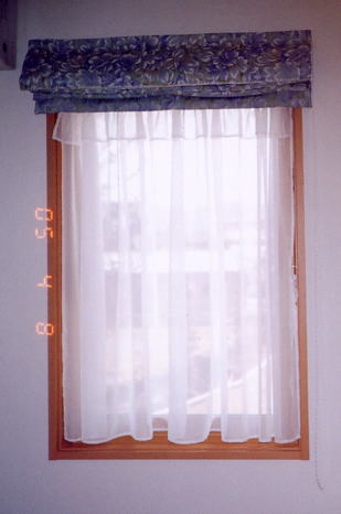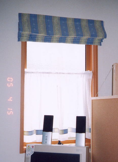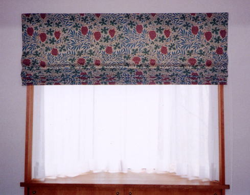手持のモリス生地をプレーンシェードにリフォーム。 開口が広いので2台連結にしました。